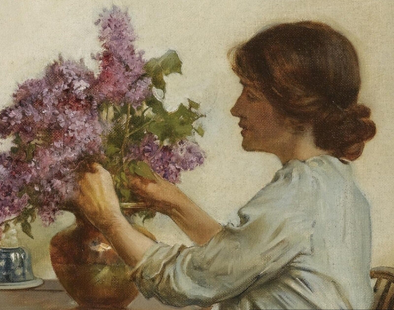 Artwork: “Posing with Posies” by Albert Chevallier Tayler