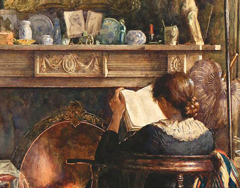 Artwork: “Mary Kelly reading a library book” by Charles Martin Hardie