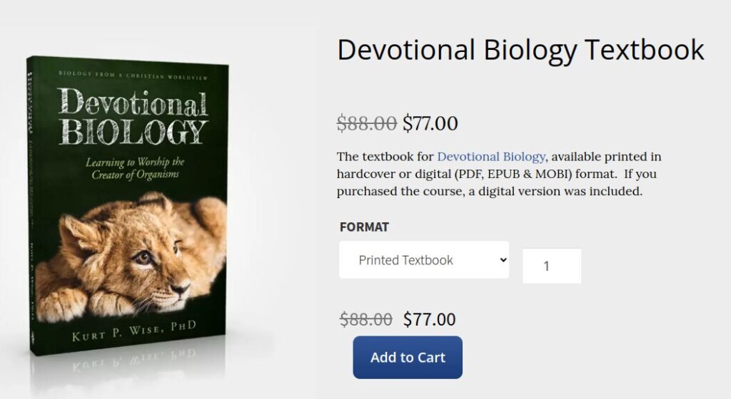 I purchased the printed textbook, the printed teacher’s guide, and the streaming lessons. The student book is made with high-quality materials and well-designed (which you know is a big deal in our home). The video lessons by Dr. Kurt Wise are also well done. He is an excellent teacher who clearly loves God, his students, and his subject matter. It provides your family an amazing opportunity to learn high school biology from one of the top creation scientists in the world.