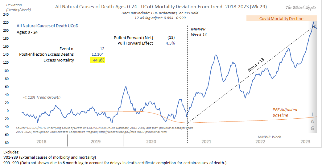 All Natural Causes of Death Ages 0-24 – UCoD Mortality Deviation From Trend 2018-2023 (Wk 29)