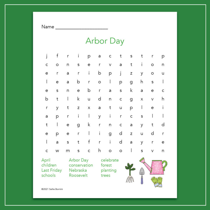 This Arbor Day word search is full of relevant words including:
