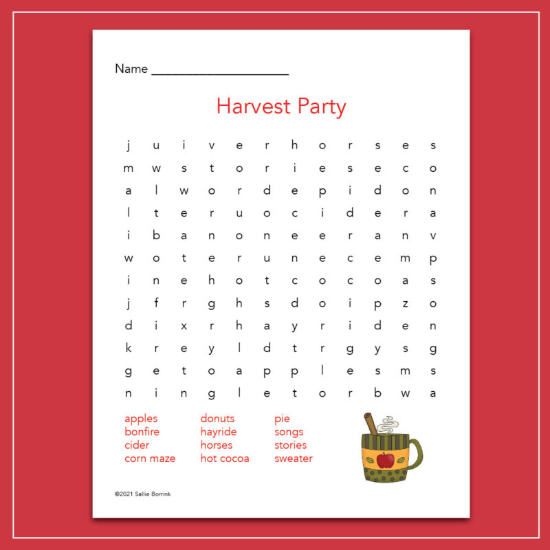 This harvest party word search for kids will be a fun part of your family’s autumn learning activities. Not only are word searches fun, but they also help children develop important reading and processing skills.