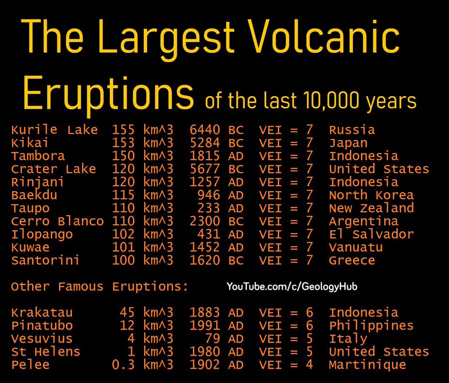 Interesting graphic from Geology Hub on YouTube. Imagine the strength of some of these eruptions when compared to the “smaller” ones. Increased volcanic activity is a hallmark of the Grand Solar Minimum. Let us hope we do not experience any of these levels. Mount Tambora was so bad in 1815 that 1816 became known as The Year Without A Summer.