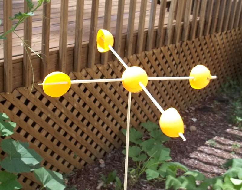 Wind speed indicator made of dowel, table tennis ball, and bamboo skewers