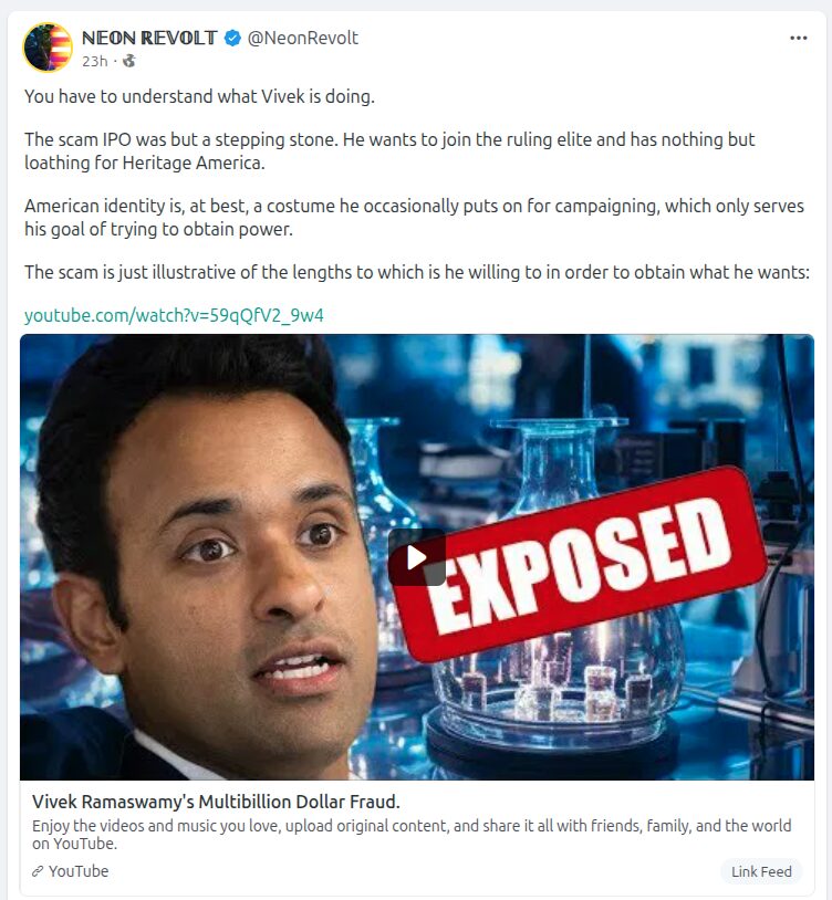 I have much more here about Vivek the Snake Ramaswamy