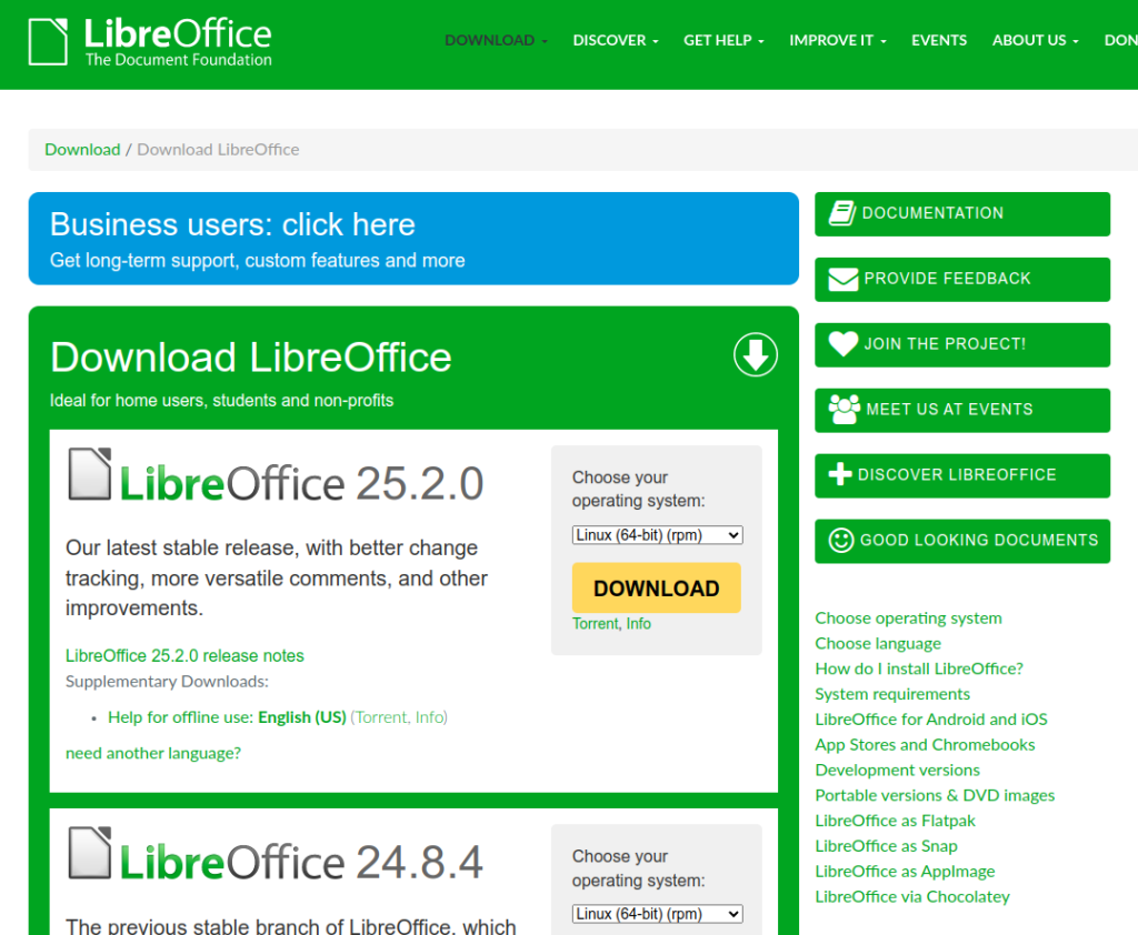Currently LibreOffice 25.2 is available. You can go here to see all of the information about the options and find what you need: Download LibreOffice.