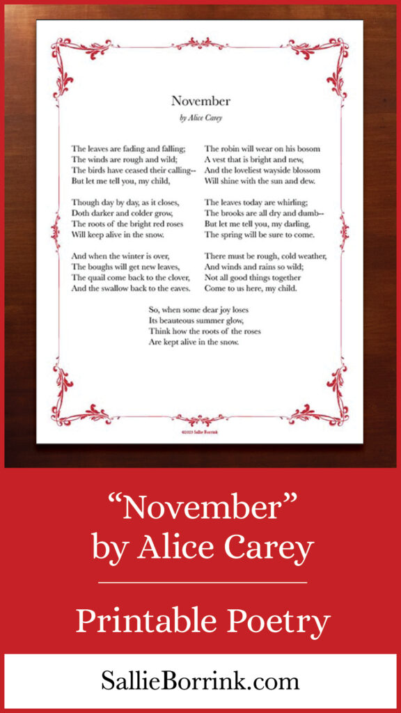 You are here: Home / Unit Studies & Learning Themes / Seasonal / Fall / “November” by Alice Carey | Printable Poem