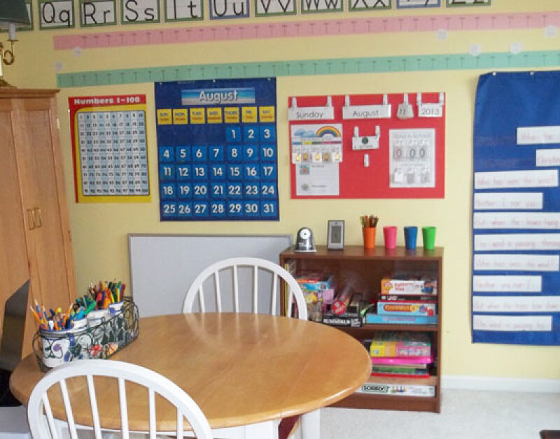 We also don’t have a computer in the learning room. This was a deliberate choice we made so we would not be distracted by it while doing our learning time together. We do use the computer a lot for learning, but when I’m working one-on-one with Caroline, I want to focus on her and I want her to focus on what I have planned for us to do. This eliminates the temptation to take a peek at my email.