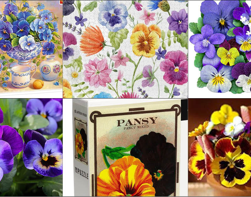 Here are three more puzzles featuring gorgeous pansies in vibrant colors.