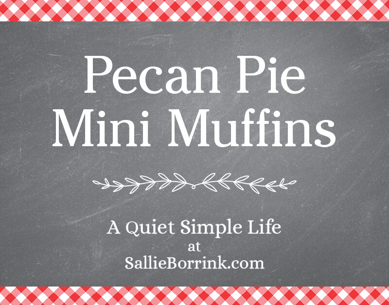 I believe this is a Country Woman magazine recipe I found on a discussion board somewhere. I made these pecan pie mini muffins for the first time a few weeks ago and they are YUMMY. Pecan pie is one of my favorite desserts ever and these just about meet that craving.