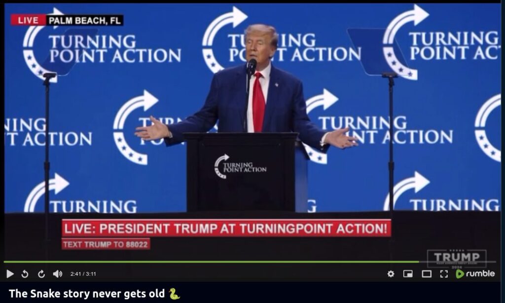 Watch this segment from Trump’s speech the other day. He’s read “The Snake” before and he deliberately takes it out of his pocket each time to break the rhythm of his scripted speech.
