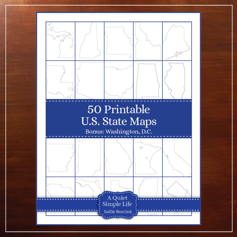 I’ve created this collection of 50 Printable U.S. State Maps plus Washington, D.C. to be a handy tool for homeschooling families. These maps can be used over and over again with all kinds of geography, history, and literature units.