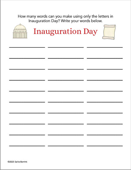 • List It! – Write one word about the inauguration for each letter of the alphabet