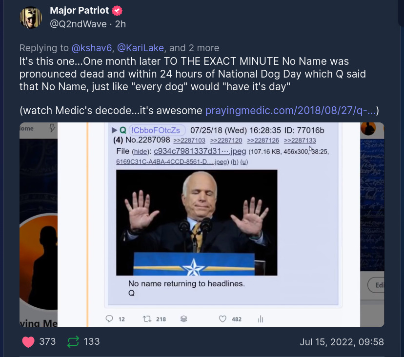 If you want to dig into it, the drops are honestly the best place. Here are two searches. Scroll to the bottom and work your way up because they are in reverse chronological order and build on each other. Not all of it will be relevant, but it will help you piece things together about McCain. Also remember one of the main points of the drops was to get average citizens to dig into open source information and learn how to research. That’s what most people miss about it.