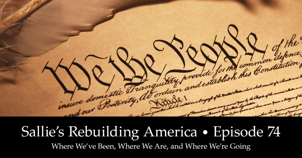 Welcome back to a new episode of my podcast, Sallie’s Rebuilding America! Tonight in Episode 74 I look at some of the big picture events going on in America and discuss: