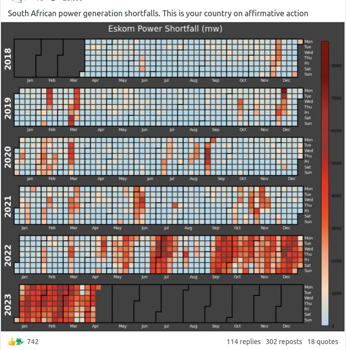 Note the dates. The story of South Africa’s power grid collapse told in two screenshots.