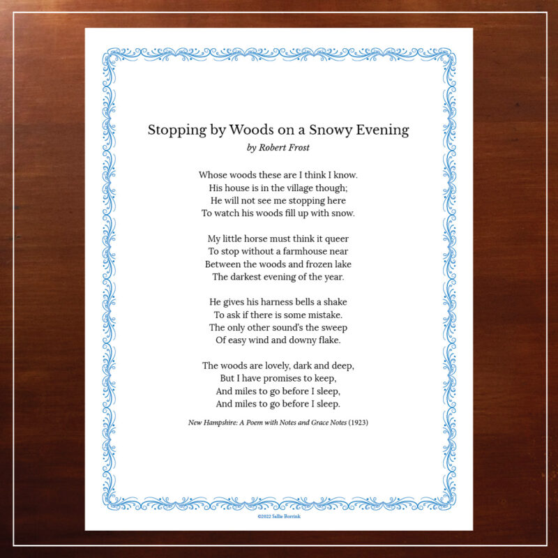 • "Stopping by Woods on a Snowy Evening” by Robert Frost