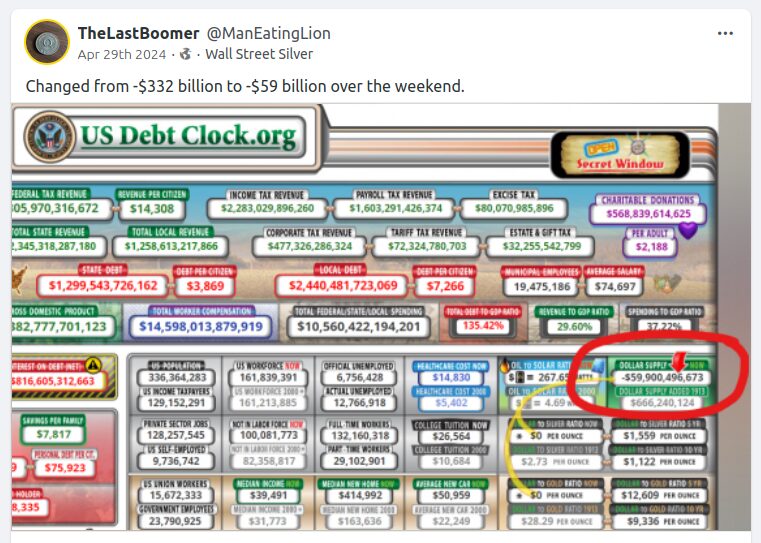 • Graphics for February 2024 are here: The U.S. Debt Clock Secret Window – February 2024