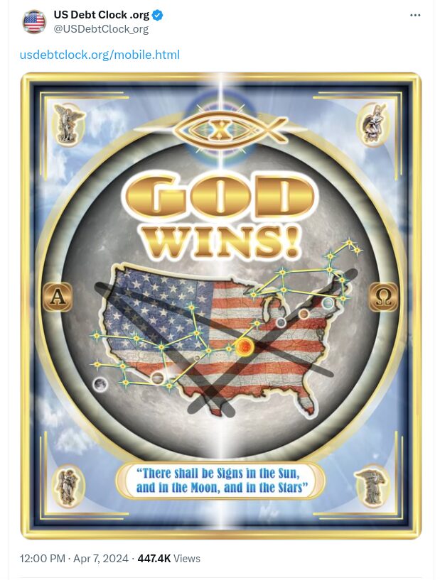 You are here: Home / Rebuilding America / Money, Currency & Financial / The U.S. Debt Clock Secret Window – April 2024
