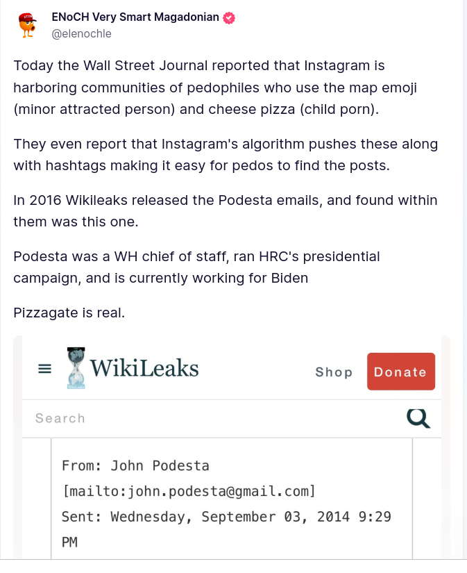 I want to remind people that shortly after Out Of Shadows came out and went viral in 2020, Instagram banned many accounts exposing Pizzagate. It also banned the hashtags Pizzagate, Out Of Shadows and Save the Children. While they were banning accounts exposing child sex… https://t.co/A9TVwNWpt1 pic.twitter.com/3bW3KperbK